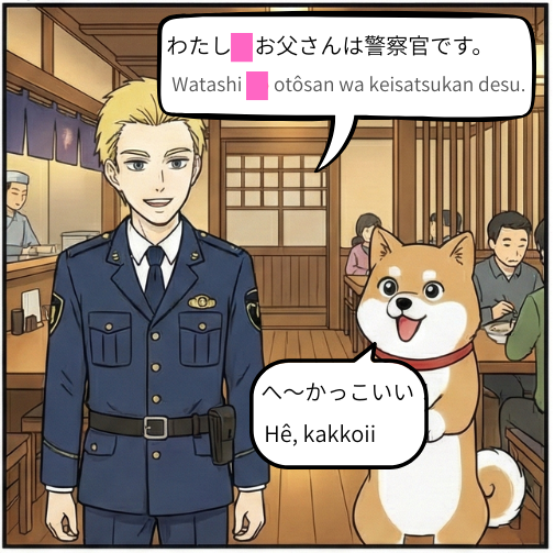Ken: My older brother is a police officer. Shiba: Whoa, that’s so cool!