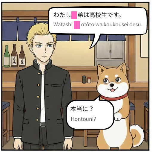 - Ken: My younger brother is a high school student. Shiba: Really?